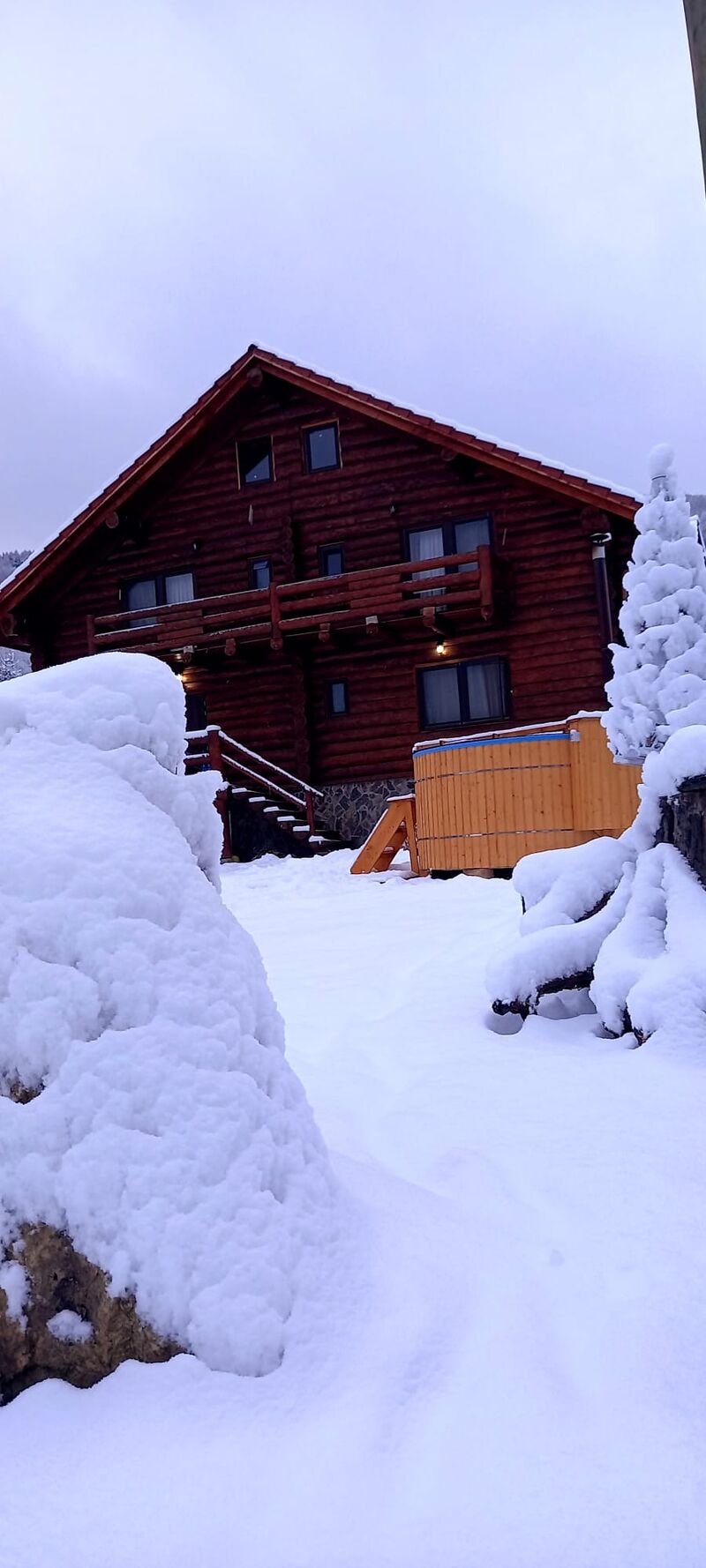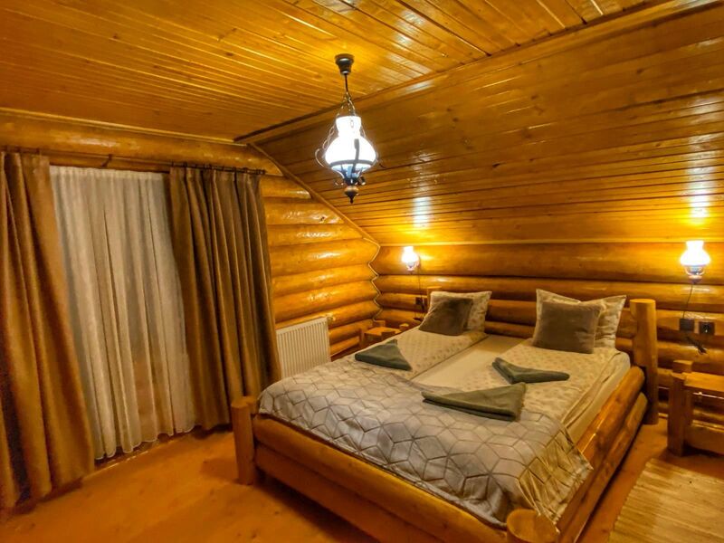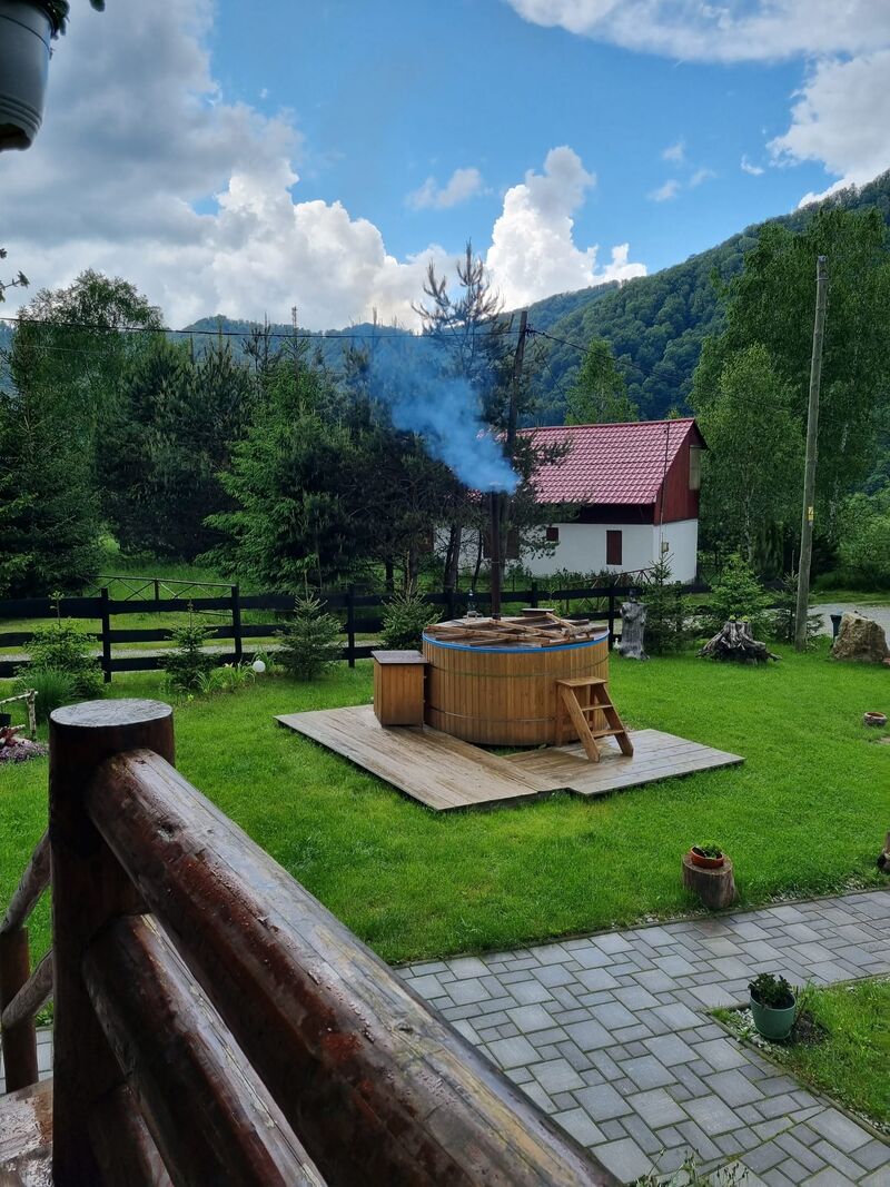 Casa lupului dispune de 6 camere cu baie proprie,capacitate de 12 persoane, bucatarie utilata,zona gratar,terasa, curte, ciubar contra cost.